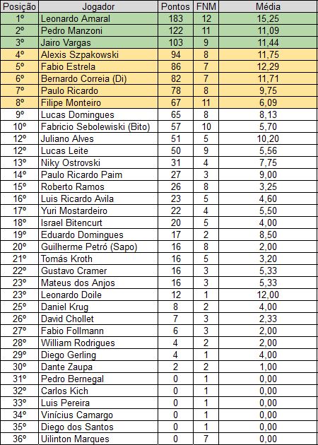 Foi um grande e extenuante dia para todos, tanto os riograndinos, como os jogadores de Pelotas e para os jogadores que vieram de Porto Alegre e região metropolitana. Mas valeu a pena, e não estou falando em questões financeiras, mas sim da oportunidade que alguns jogadores tiveram de participar de um torneio com rel competitivo, outros enfrentaram oponentes bem diferentes do que estavam acostumados, conheceram pessoas novas, trocaram e venderam cartas e o mais importante, jogaram muito Magic the Gathering.